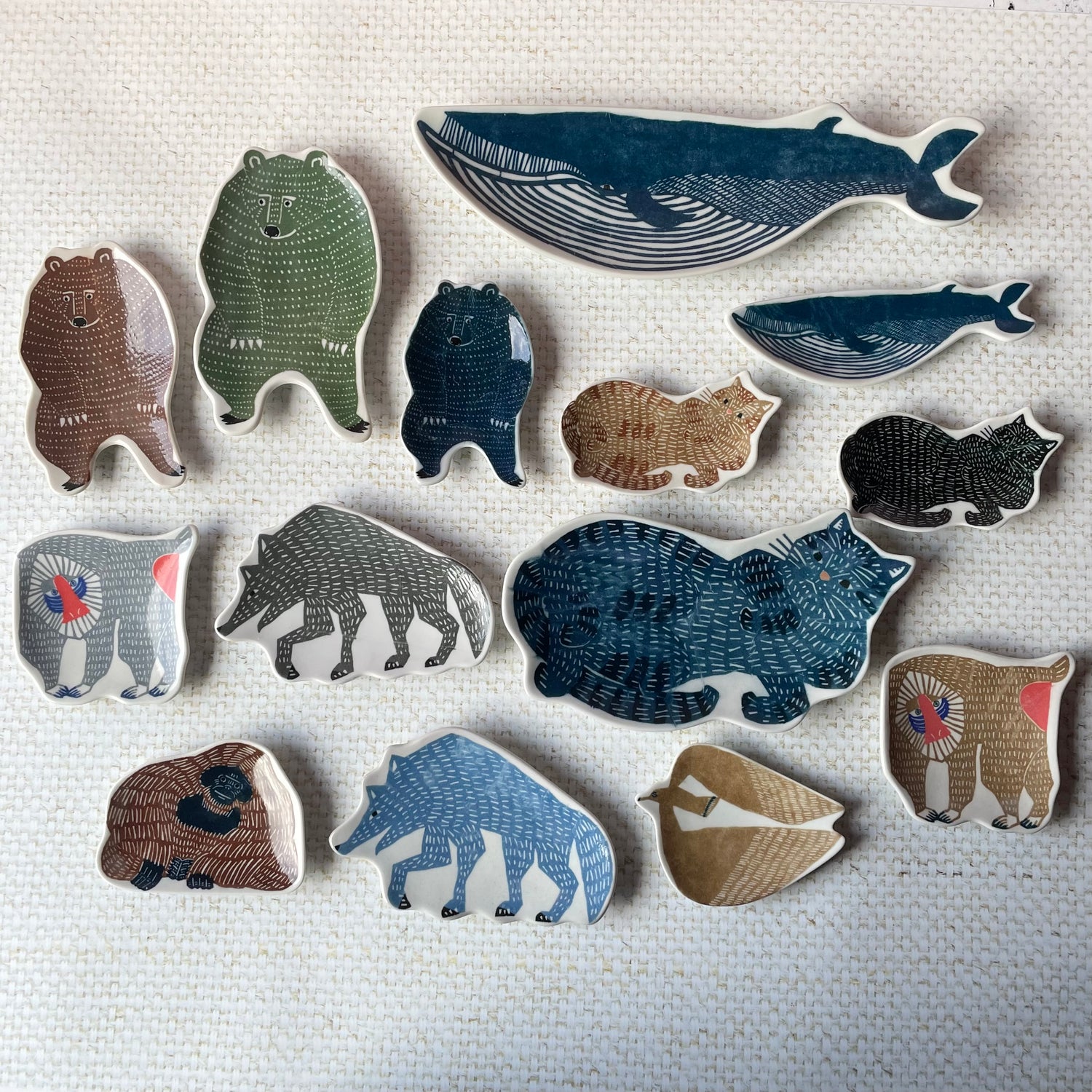 Takeshi Matsunaga and Chie Takai, the husband and wife duo of Tokyo based textile design company Kata Kata, have teamed up with Classiky to create a range of whimsical, animal ceramic plates, known as mamezera or ‘bean dish’.