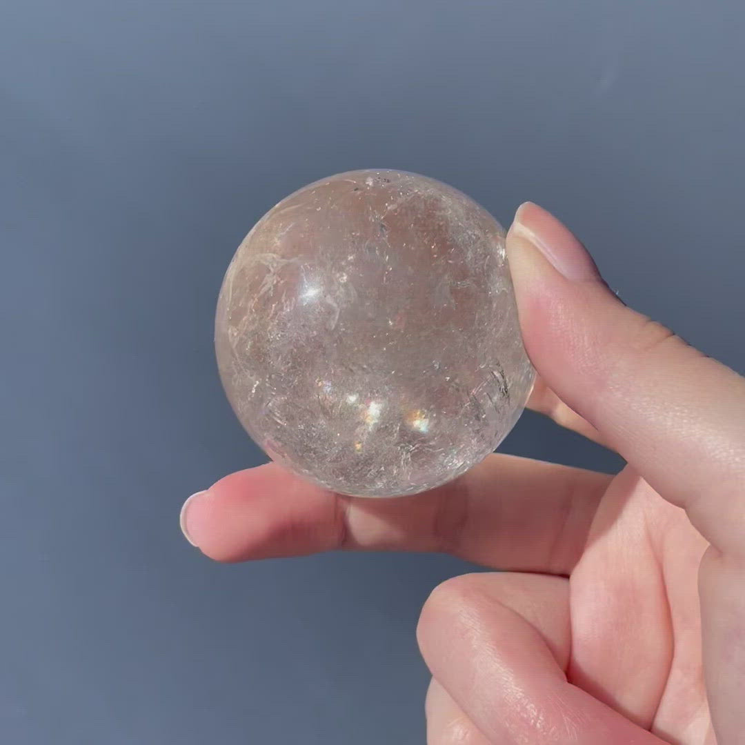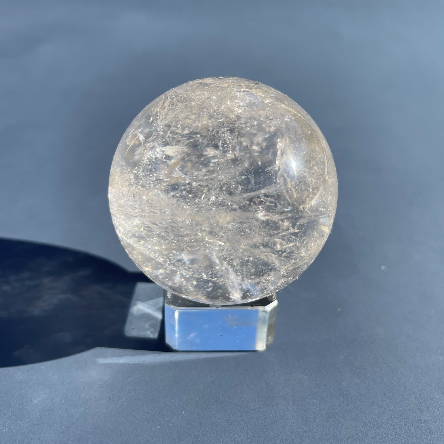 Revered as a powerful source of transformative magic, these high-grade Clear Quartz Spheres radiate light and power with their natural rainbow rays of magic. We are surrounded by Clear Quartz due to its many uses and abundance on Earth. Clear Quartz can be piezoelectric, having the ability to generate electricity when hit, and is used in many electronic devices and clocks. Named after the Greek word for ice, ‘krystallos’, because the ancient Greeks believed Clear Quartz was ice frozen forever hard by the Gods. Clear Quartz is considered an essential crystal and a master healer, due to the prisms containing full, sparkling rainbow spectrums. Clear Quartz amplifies the effects of all other crystals and clears energies.