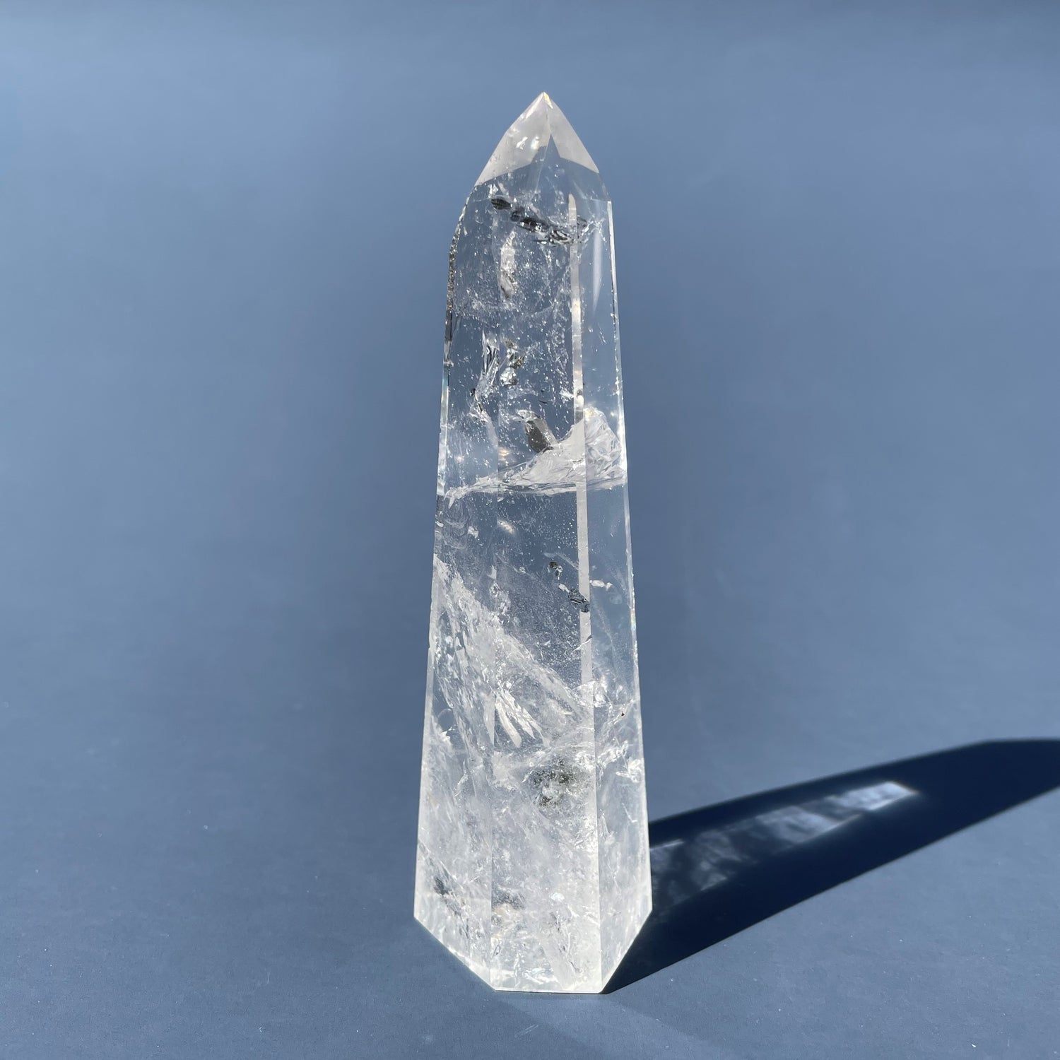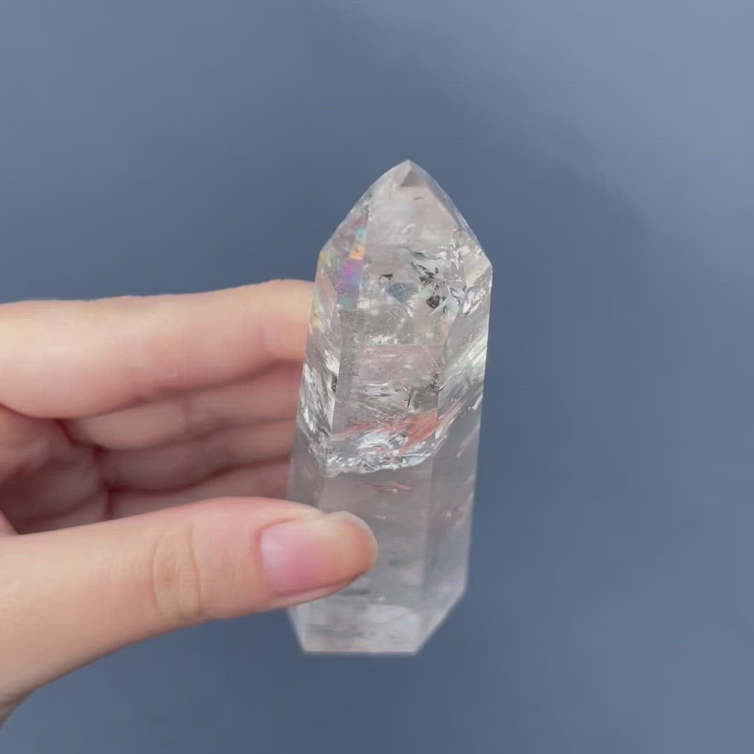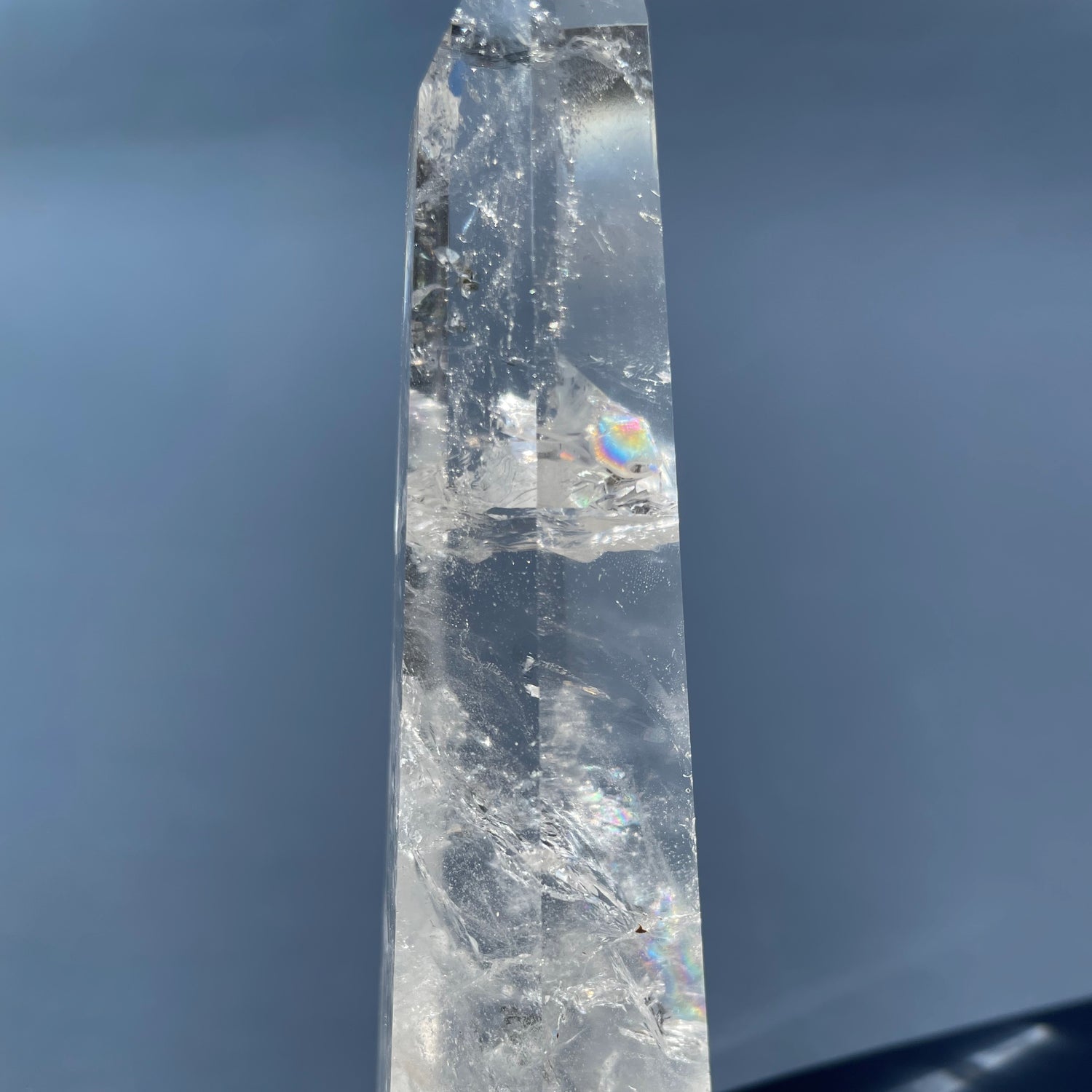 Revered as a powerful source of transformative magic, these high-grade Clear Quartz Towers radiate light and power with their natural rainbow rays of magic. We are surrounded by Clear Quartz due to its many uses and abundance on Earth. Clear Quartz can be piezoelectric, having the ability to generate electricity when hit, and is used in many electronic devices and clocks. Named after the Greek word for ice, ‘krystallos’, because the ancient Greeks believed Clear Quartz was ice frozen forever hard by the Gods. Clear Quartz is considered an essential crystal and a master healer, due to the prisms containing full, sparkling rainbow spectrums. Clear Quartz amplifies the effects of all other crystals and clears energies.