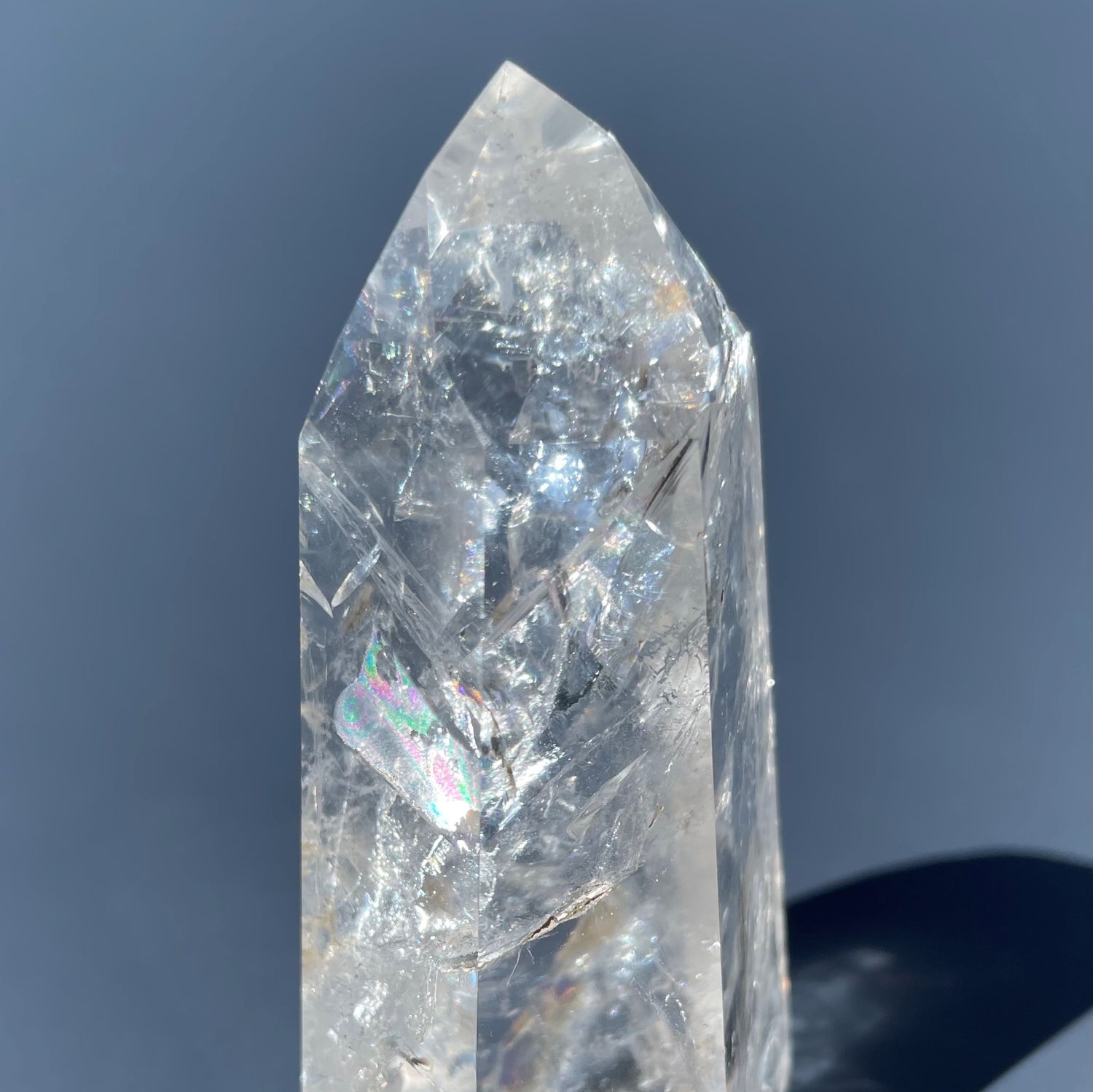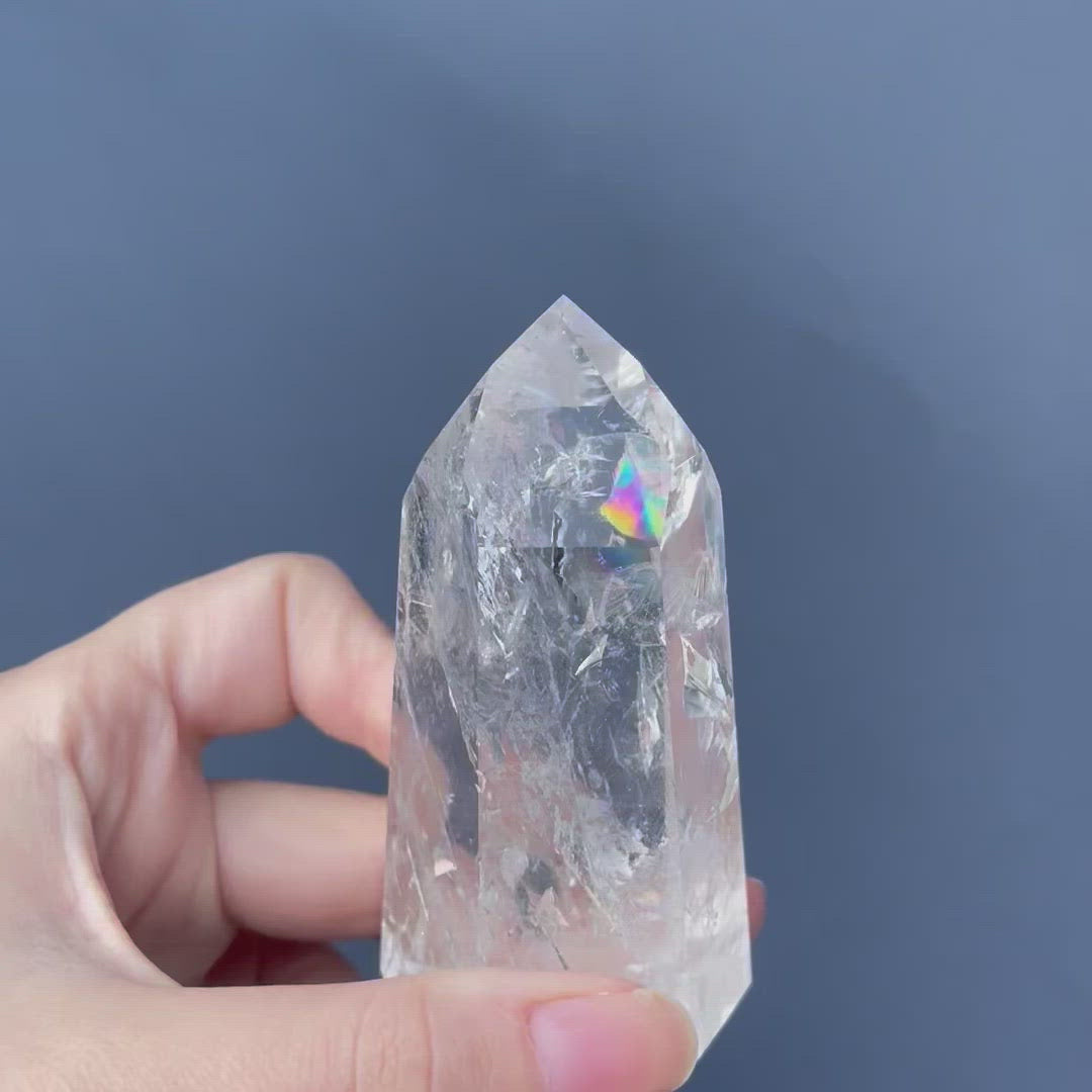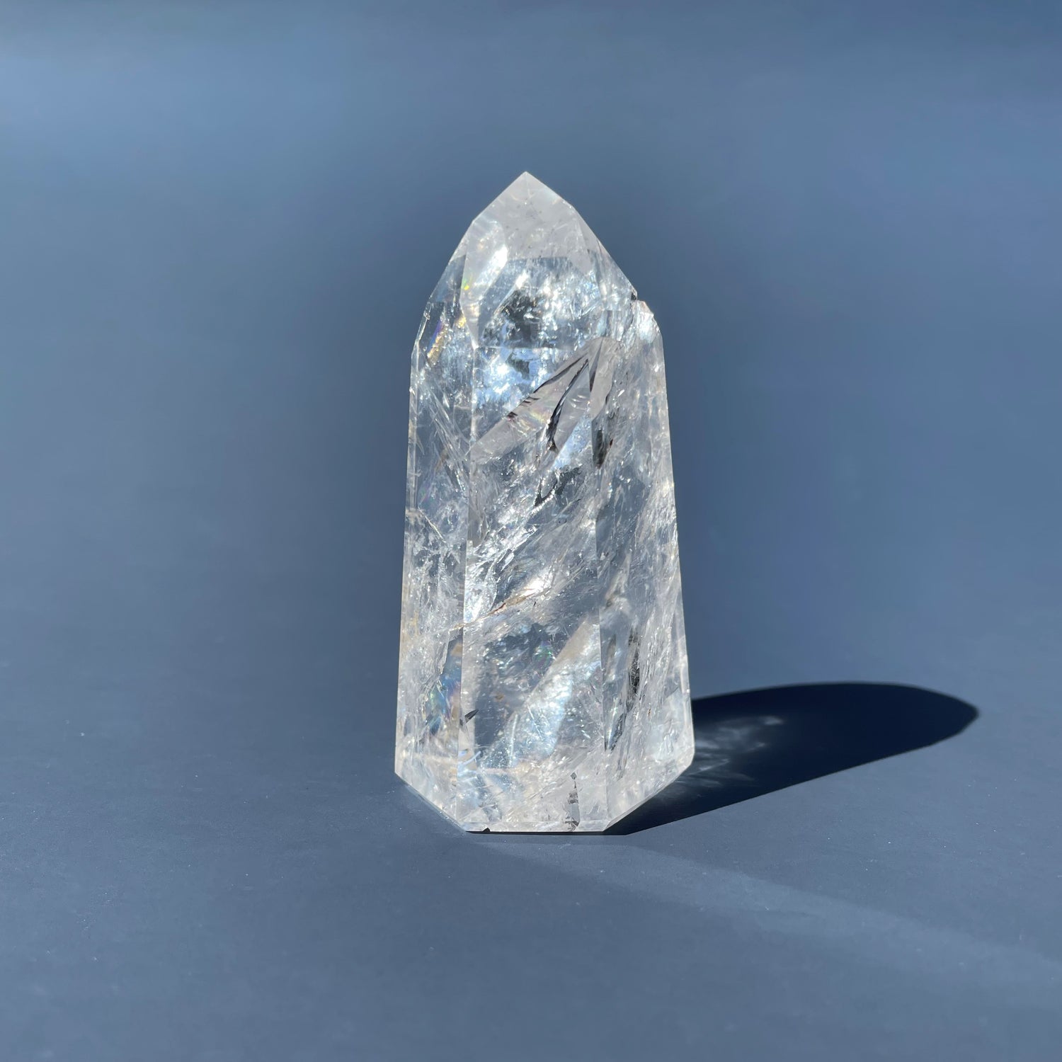 Revered as a powerful source of transformative magic, these high-grade Clear Quartz Towers radiate light and power with their natural rainbow rays of magic. We are surrounded by Clear Quartz due to its many uses and abundance on Earth. Clear Quartz can be piezoelectric, having the ability to generate electricity when hit, and is used in many electronic devices and clocks. Named after the Greek word for ice, ‘krystallos’, because the ancient Greeks believed Clear Quartz was ice frozen forever hard by the Gods. Clear Quartz is considered an essential crystal and a master healer, due to the prisms containing full, sparkling rainbow spectrums. Clear Quartz amplifies the effects of all other crystals and clears energies.