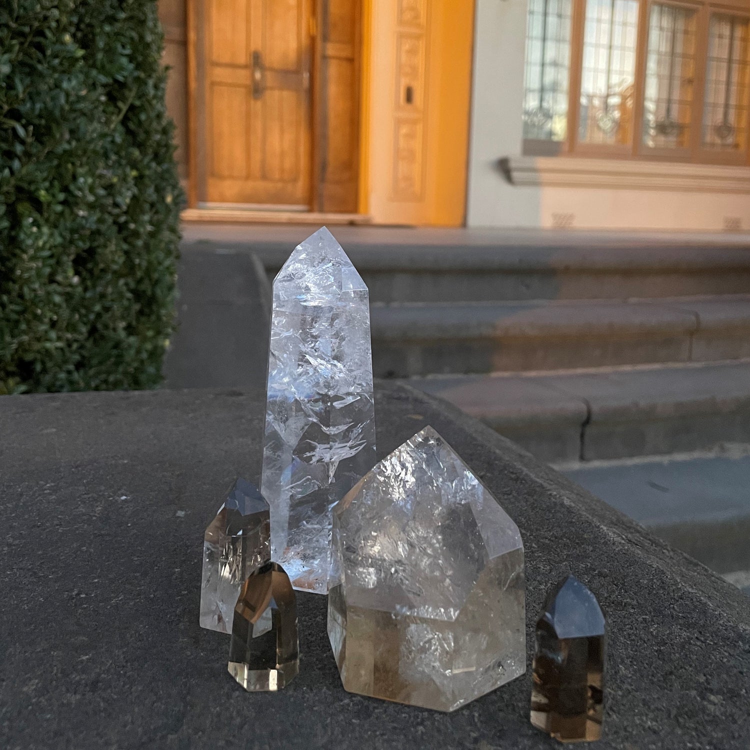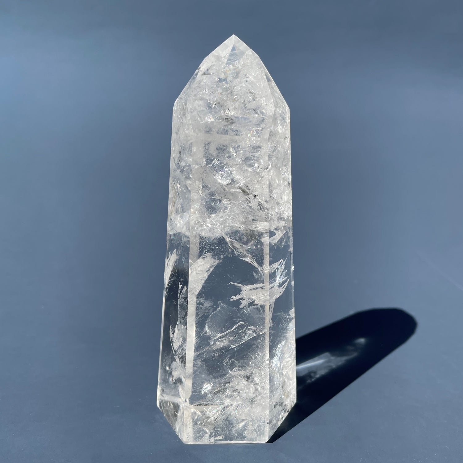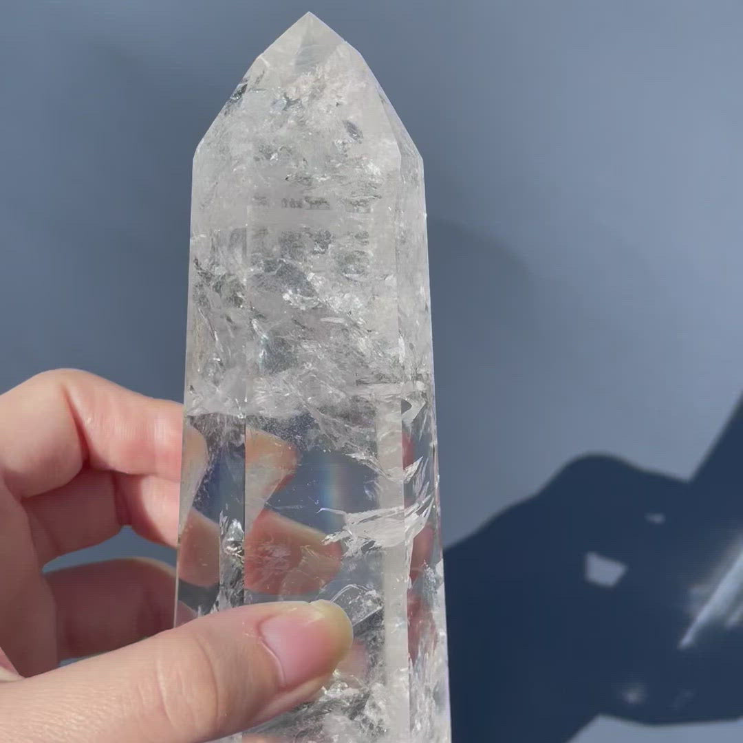 Revered as a powerful source of transformative magic, these high-grade Clear Quartz Towers radiate light and power with their natural rainbow rays of magic. We are surrounded by Clear Quartz due to its many uses and abundance on Earth. Clear Quartz can be piezoelectric, having the ability to generate electricity when hit, and is used in many electronic devices and clocks. Named after the Greek word for ice, ‘krystallos’, because the ancient Greeks believed Clear Quartz was ice frozen forever hard by the Gods. Clear Quartz is considered an essential crystal and a master healer, due to the prisms containing full, sparkling rainbow spectrums. Clear Quartz amplifies the effects of all other crystals and clears energies.