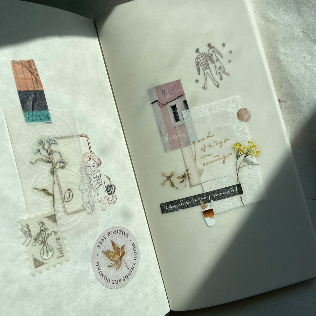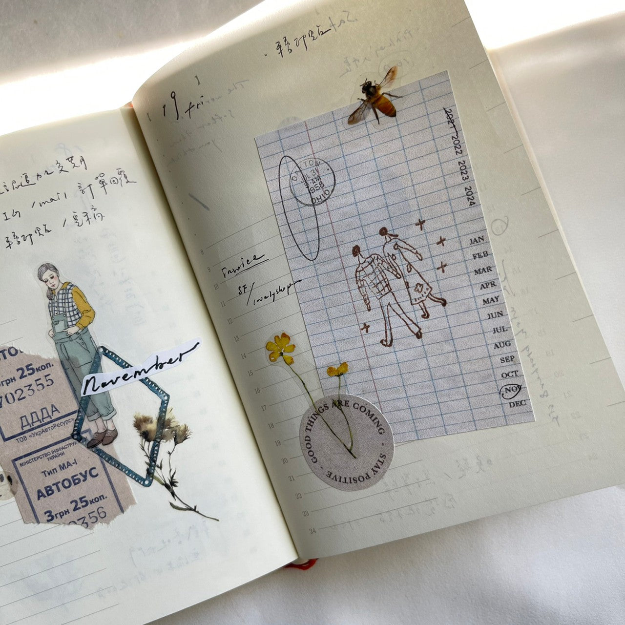 PET Tape designed by Taiwanese artist Pion, known for her delicate girl illustrations, cute flowers and animals. This tape comes with a backing release paper, which allows you to cut out the designs individually and use them as stickers. Perfect for adding a beautiful touch to your journal, planner, snail mail and craft projects!