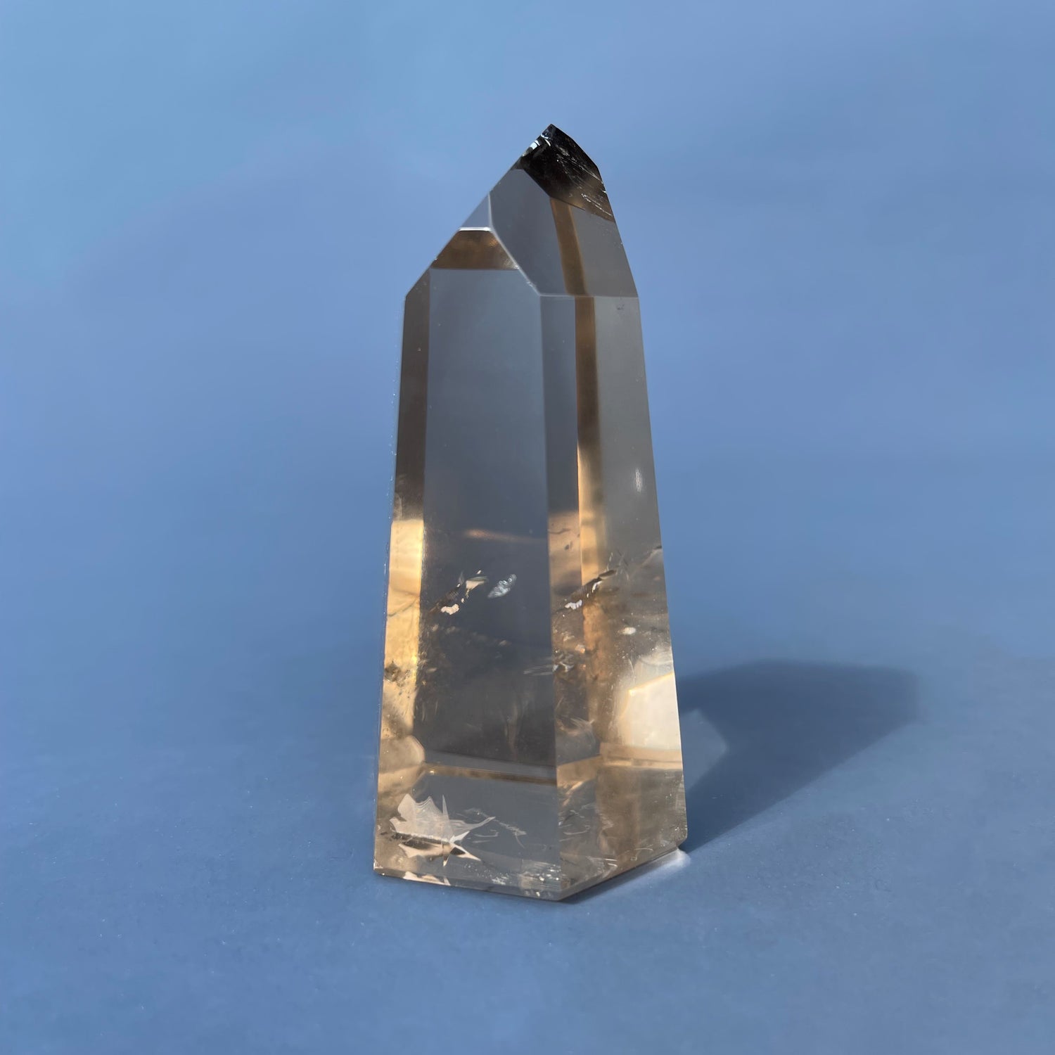 Citrine is a rare, naturally occurring yellow form of Quartz. Its colour is due to a sub microscopic distribution of ferric iron particles. The vast majority of Citrine sold by crystal shops is actually heat-treated Amethyst. Natural Citrine forms differently to Amethyst and has a consistent colour throughout the crystal, ranging in colour from a pale champagne, to honey, to a deep smoky honey colour that glows yellow. Heated Amethyst, on the other hand is often a more orange, burnt colour, and will often contain white inclusions.