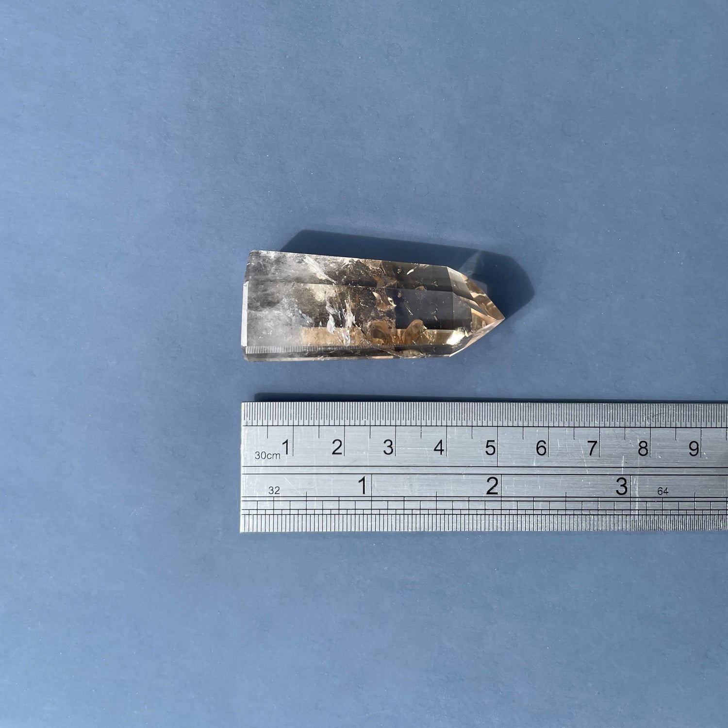 Citrine is a rare, naturally occurring yellow form of Quartz. Its colour is due to a sub microscopic distribution of ferric iron particles. The vast majority of Citrine sold by crystal shops is actually heat-treated Amethyst. Natural Citrine forms differently to Amethyst and has a consistent colour throughout the crystal, ranging in colour from a pale champagne, to honey, to a deep smoky honey colour that glows yellow. Heated Amethyst, on the other hand is often a more orange, burnt colour, and will often contain white inclusions.