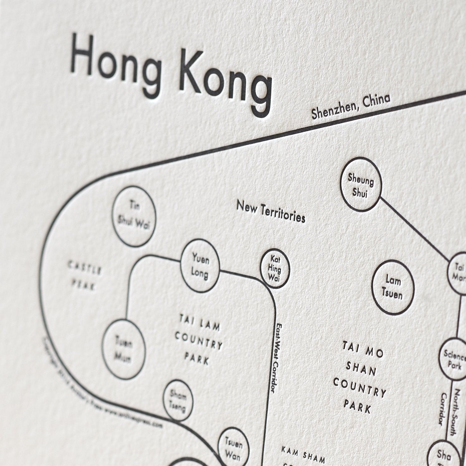 Hong Kong Map Letterpress Print