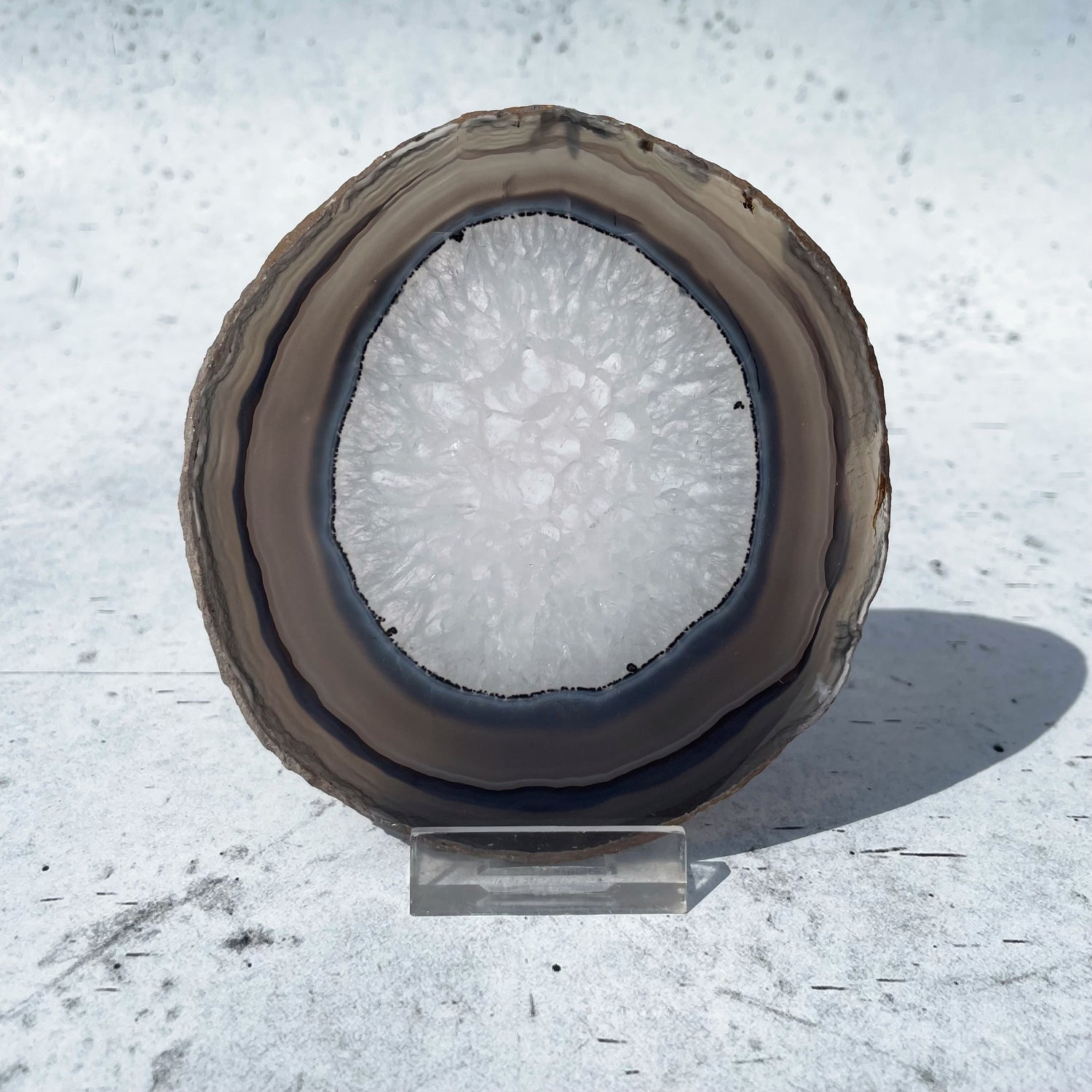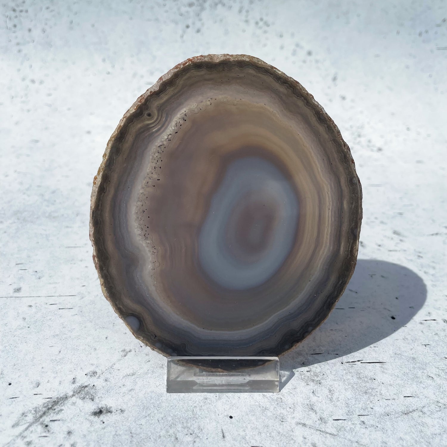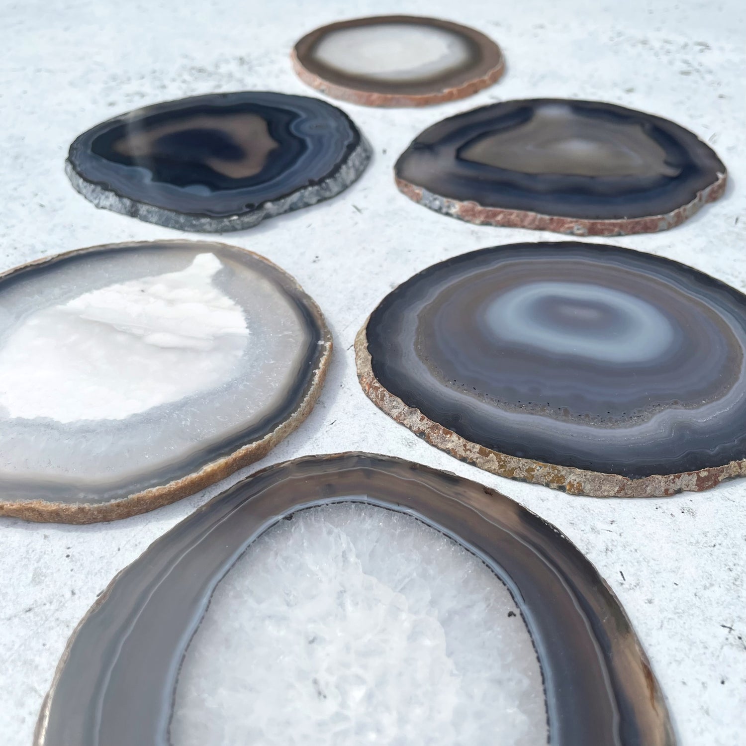 Agate is a banded variety of chalcedony, a cryptocrystalline form of quartz. It is characterised by its distinctive bands, formed by microscopic quartz crystals laid down in rows. Although Agate does come in a variety of colours, the very bright colours you will find in crystal shops are artificially dyed. Just like the rest of our crystals, our Agate slices are natural and untreated.