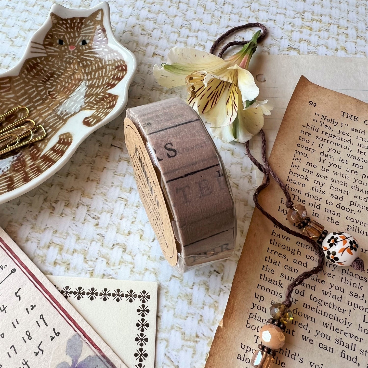 The pattern on these charming washi tapes, designed by illustrator and collage artist Yoko Inoue, is taken from a section of the artist’s original work. The tape pattern varies in colour shading and text characters depending on where the section has been taken. They provide the perfect accent for your next journaling, planner and snail mail letter writing projects!