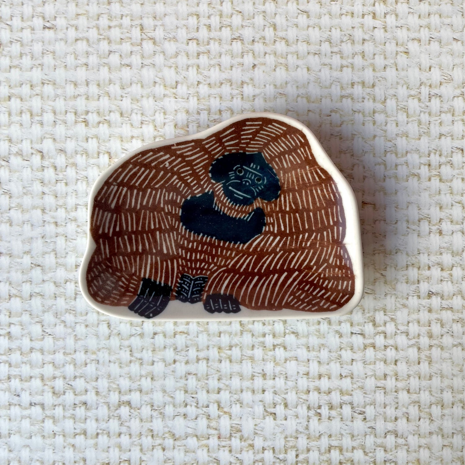 Kata Kata’s unique view of the world and the use of traditional Japanese screen printing technique, katazome, have created textile patterns of distinct animal characters – whales, orangutan, bears, cats, albatross, mandrill, bison and wolves, formed from simple hand drawn linework and a minimal colour palette. These patterns are then transferred to the ceramicware via the technique of inbante, a traditional copper plate transfer method. The Kata Kata team chose to use these traditional manual techniques to create character-filled and unique patterns, that can contain some irregularities such as blurring and colour unevenness in the pattern.