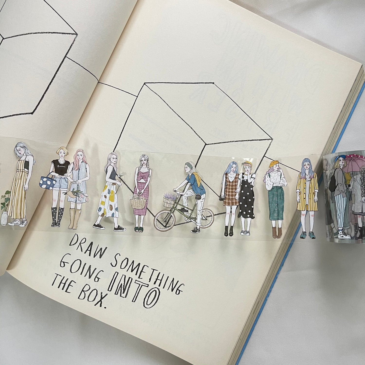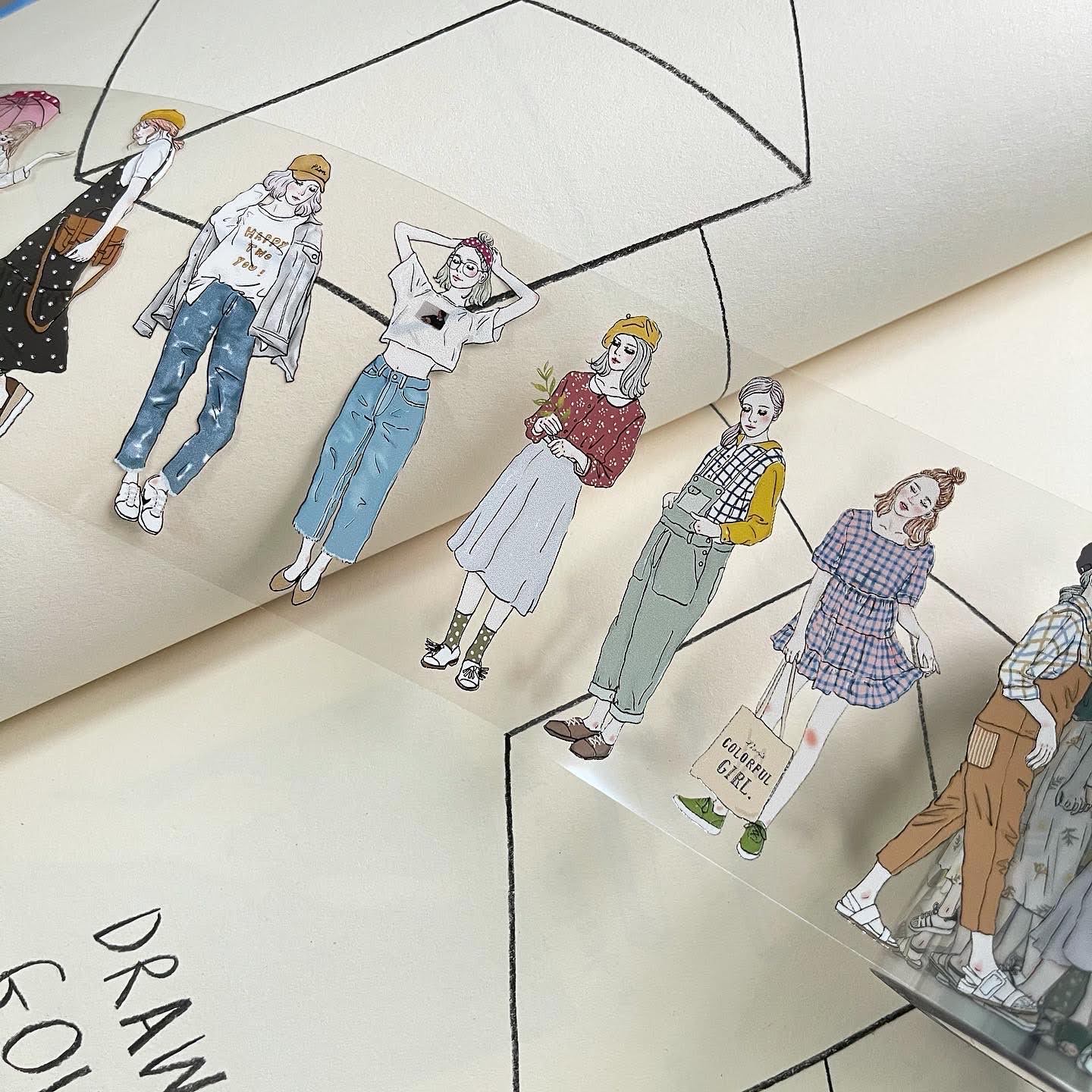 PET Tape designed by Taiwanese artist Pion, known for her delicate girl illustrations, cute flowers and animals. This tape comes with a backing release paper, which allows you to cut out the designs individually and use them as stickers. Perfect for adding a beautiful touch to your journal, planner, snail mail and craft projects!