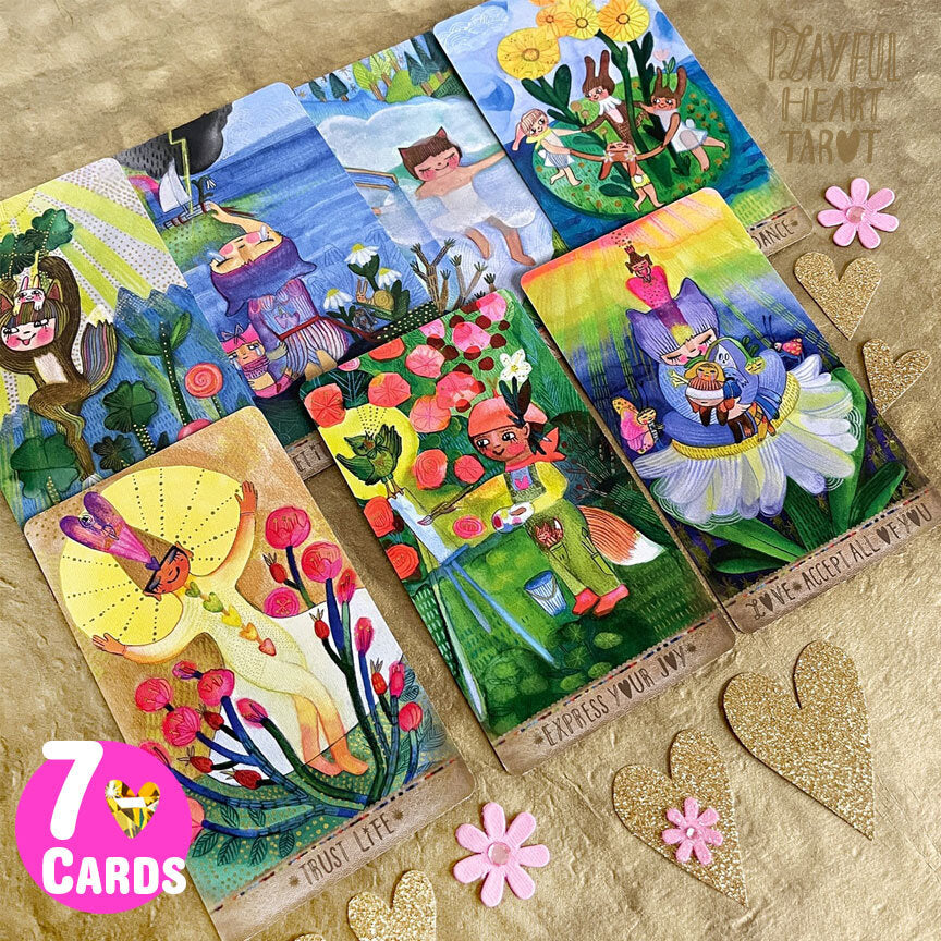 Combine the Playful Heart Tarot with the Seven Card Extension Pack, which has the same size, cardstock and backs as both the First Edition and Second Edition main Tarot decks. This allows you to seamlessly mix and match cards or use them by themselves for journaling, display etc.