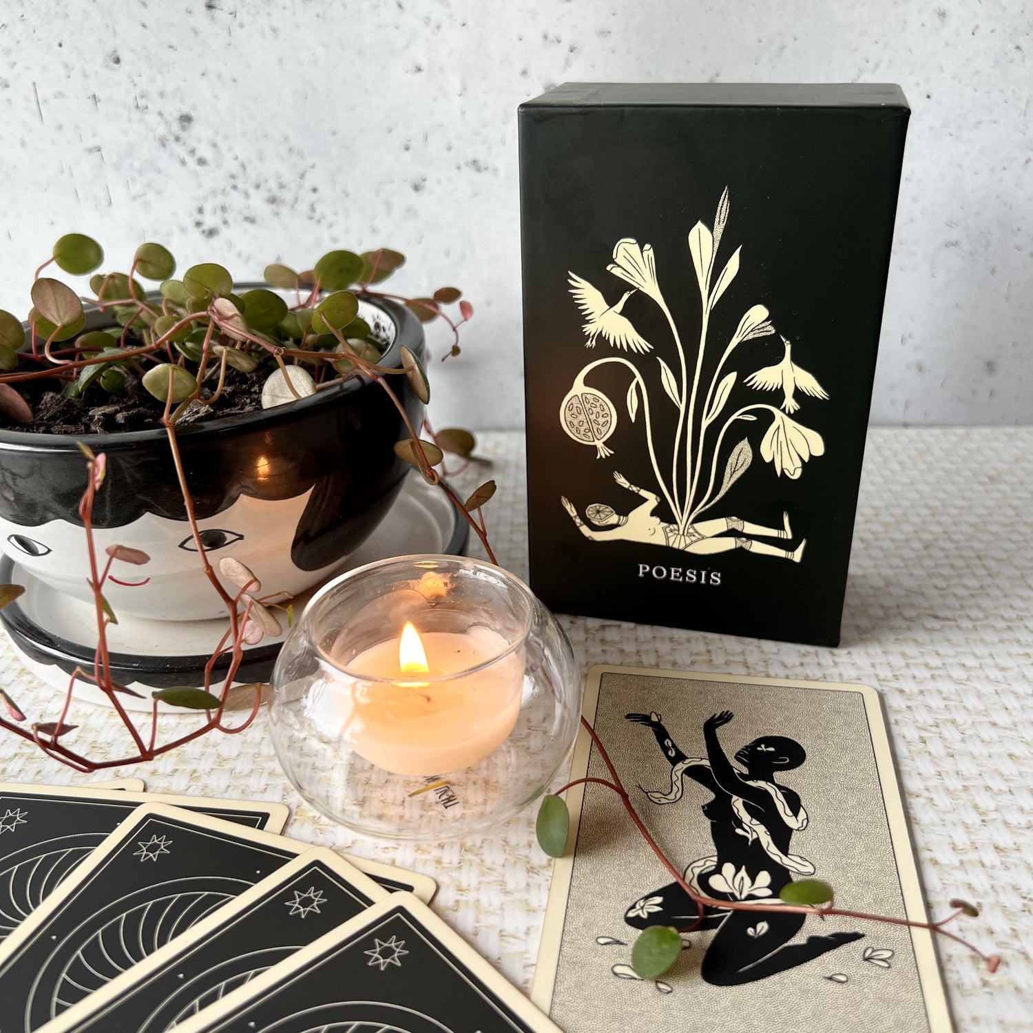 The Poesis Oracle is a 77-card indie oracle deck created by artist Andrea Wan. Poesis is a collection of cards designed to answer questions by calling upon the inner self, trusting that you already hold the answers within you. Art and poetry is combined to help cultivate intuitive abilities and to aid you in decision making, as your intuition grows to be a source of guidance. The deck has been created with this focus on self-empowerment, made to be accessible to people of all age groups, belief systems and walks of life.