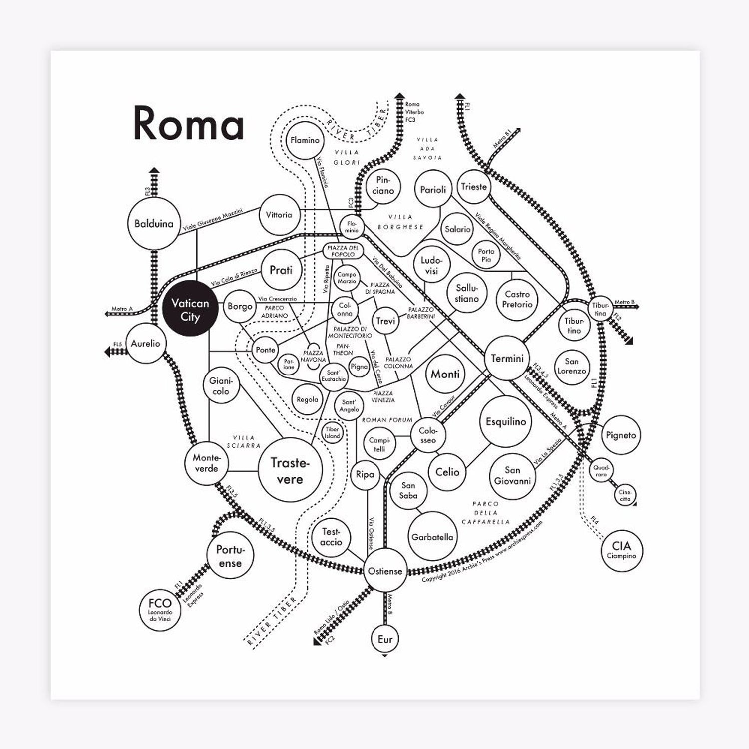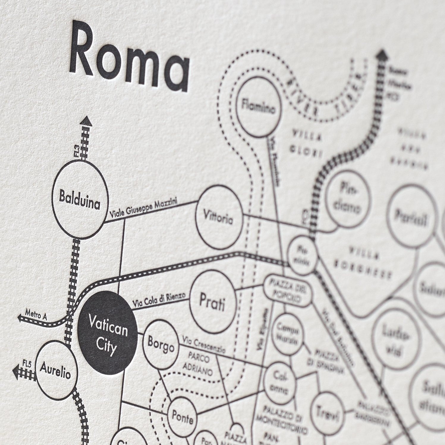 Rome Map Letterpress Print