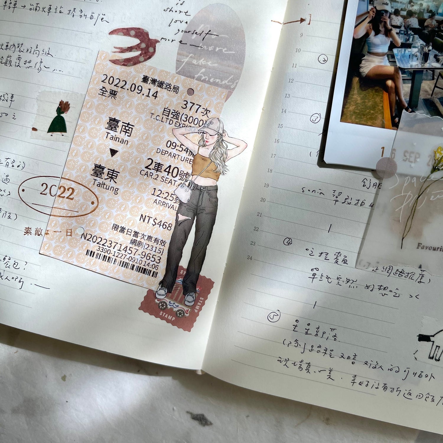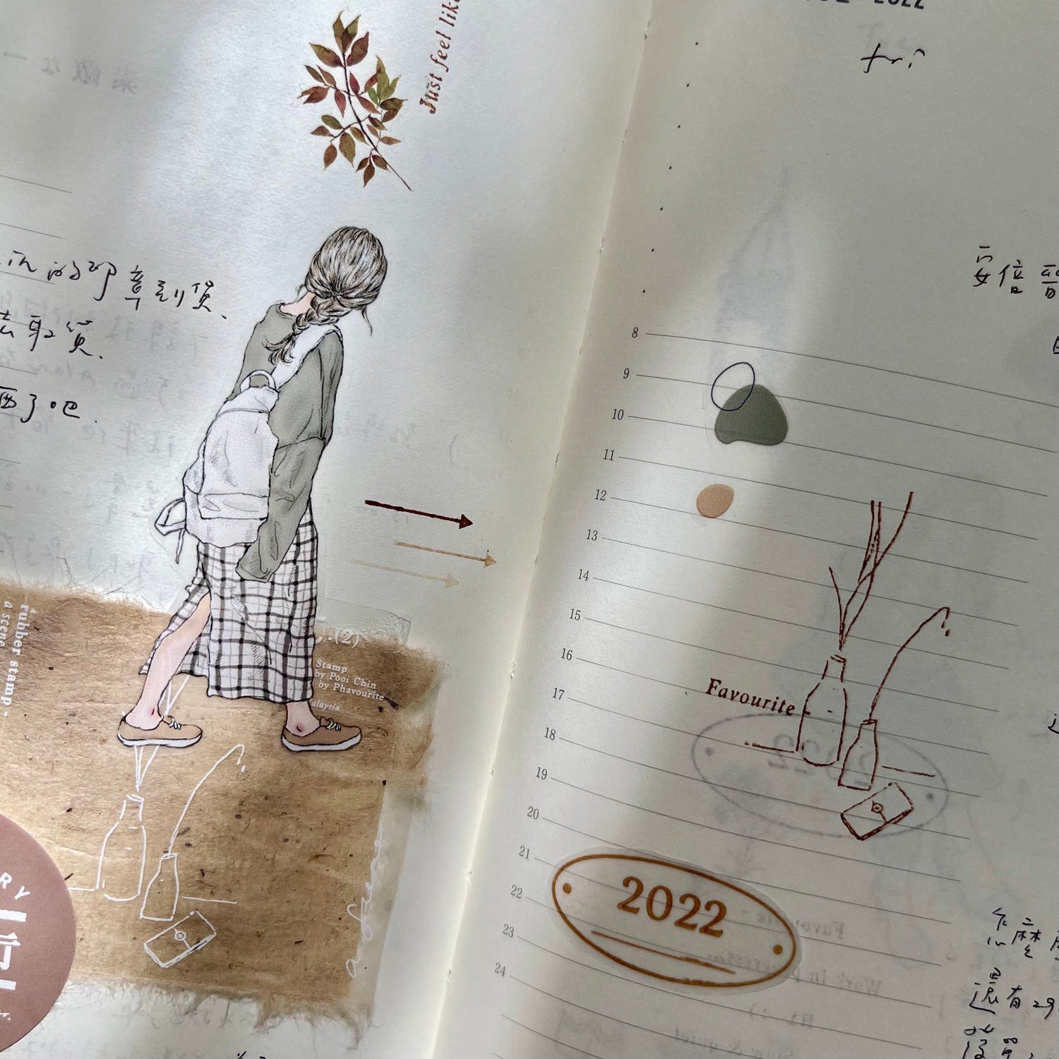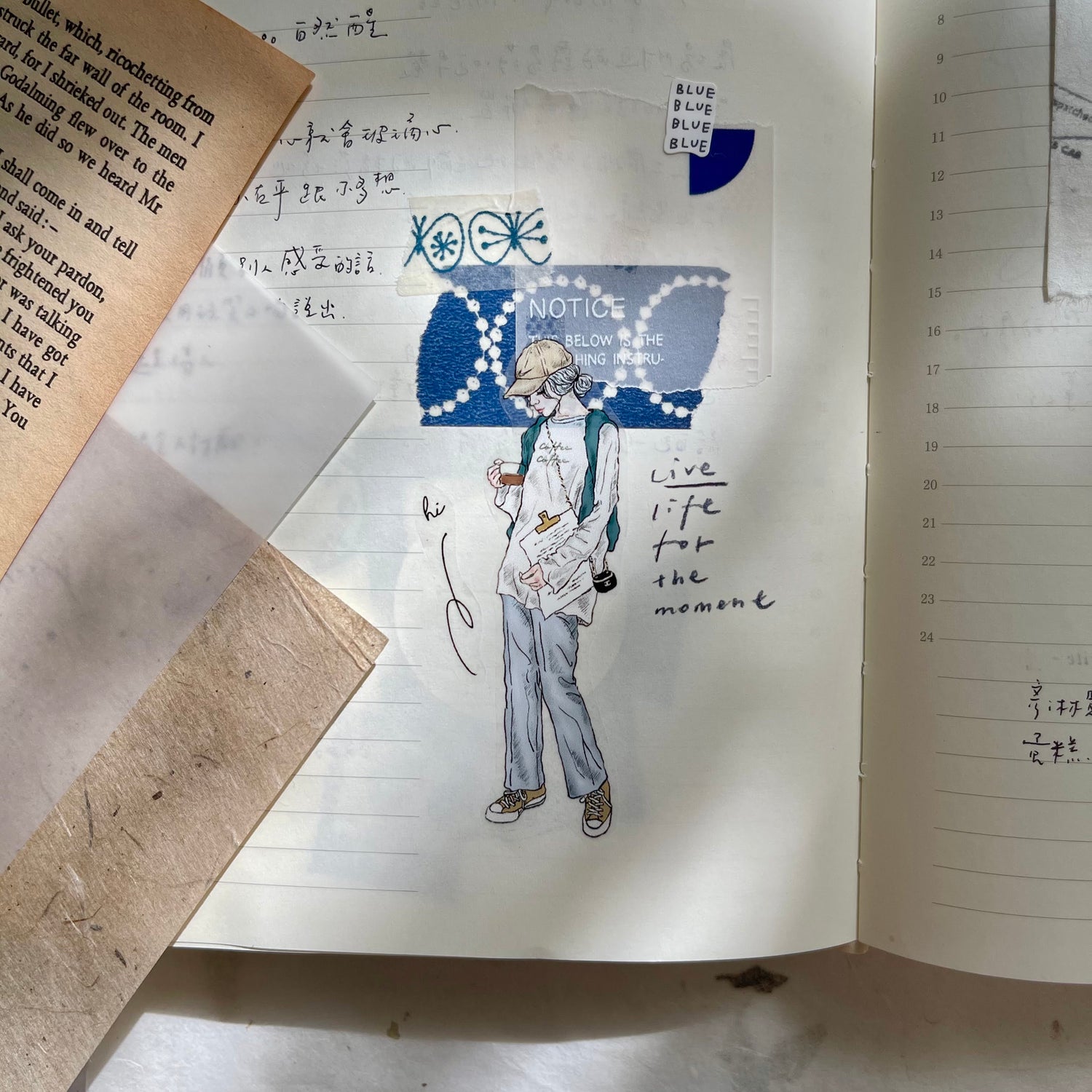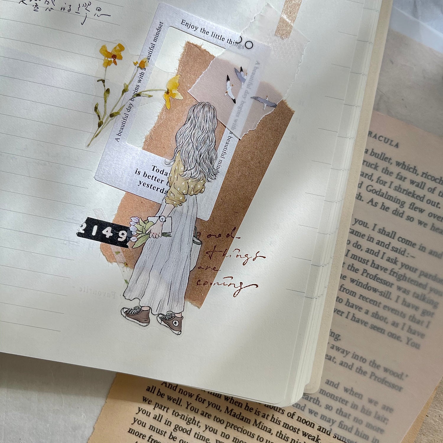 PET Tape designed by Taiwanese artist Pion, known for her delicate girl illustrations, cute flowers and animals. This tape comes with a backing release paper, which allows you to cut out the designs individually and use them as stickers. Perfect for adding a beautiful touch to your journal, planner, snail mail and craft projects!