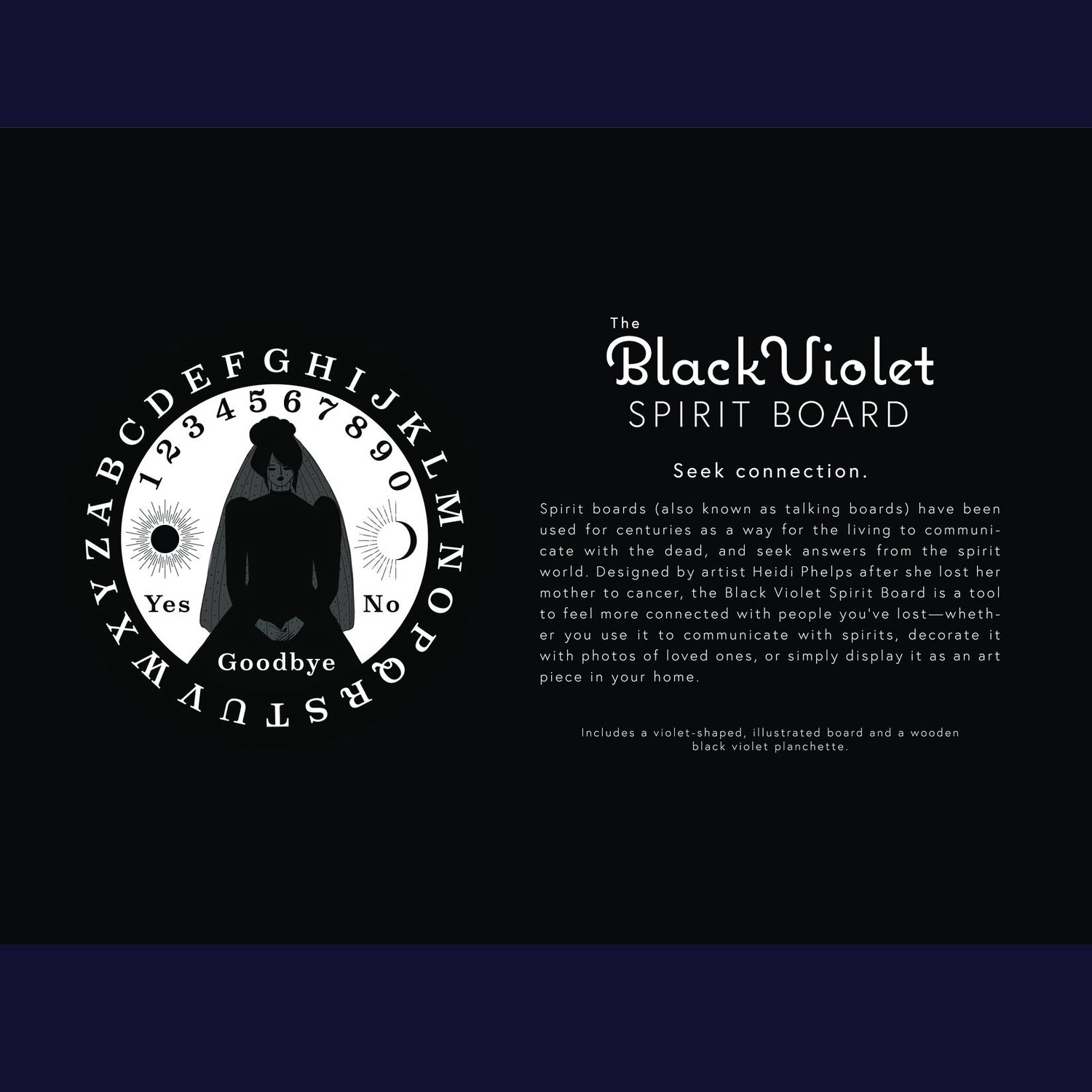 Spirit boards (also known as talking boards) have been used for centuries as a way for the living to communicate with the dead, and seek answers from the spirit world. Designed by artist Heidi Phelps after losing her mother to cancer, the Black Violet Spirit Board is a tool to feel more connected with people you’ve lost—whether you use it to communicate with spirits, place it on your altar with photos of loved ones, or simply display it as an art piece in your home. Think of it as a fresh take on the Ouija board.
