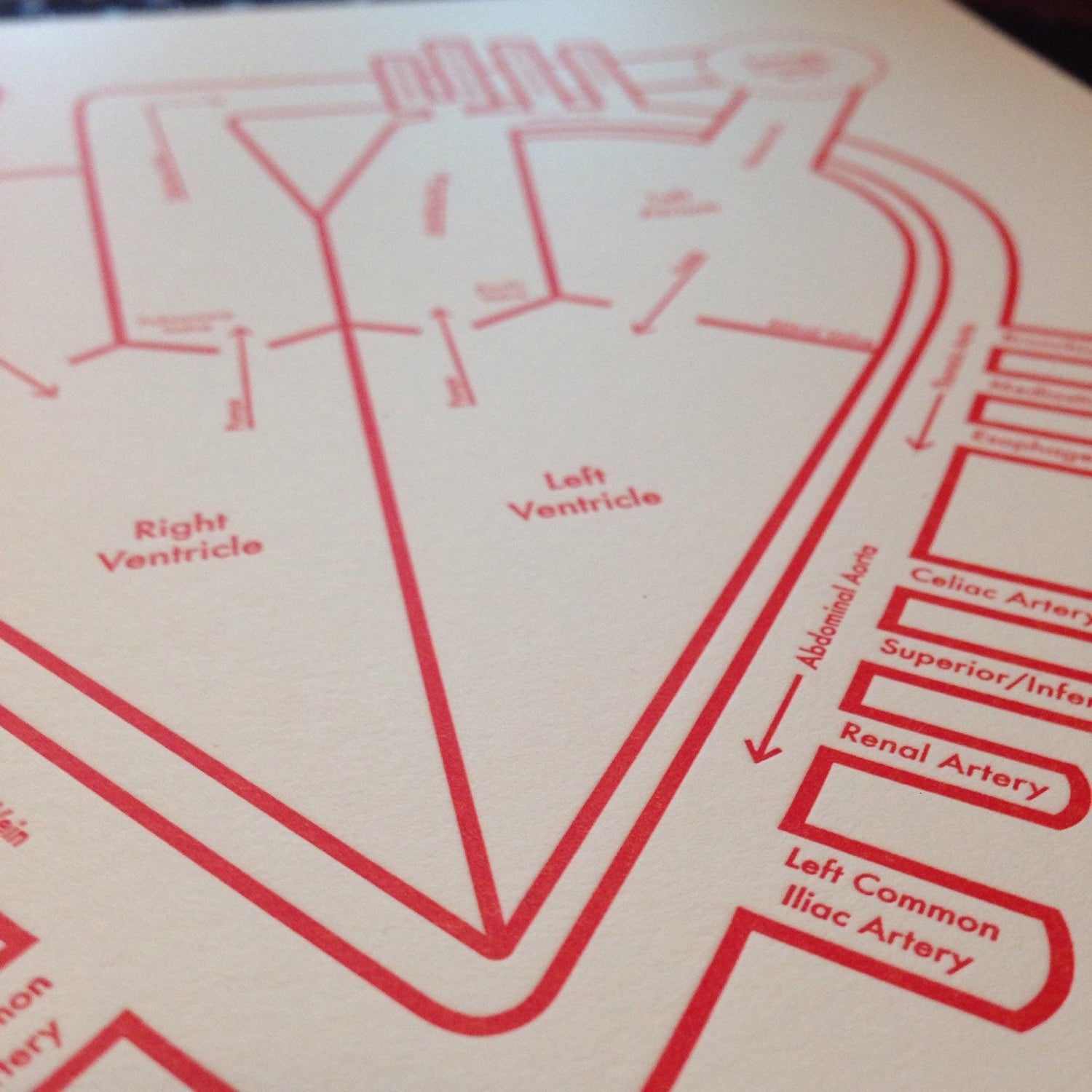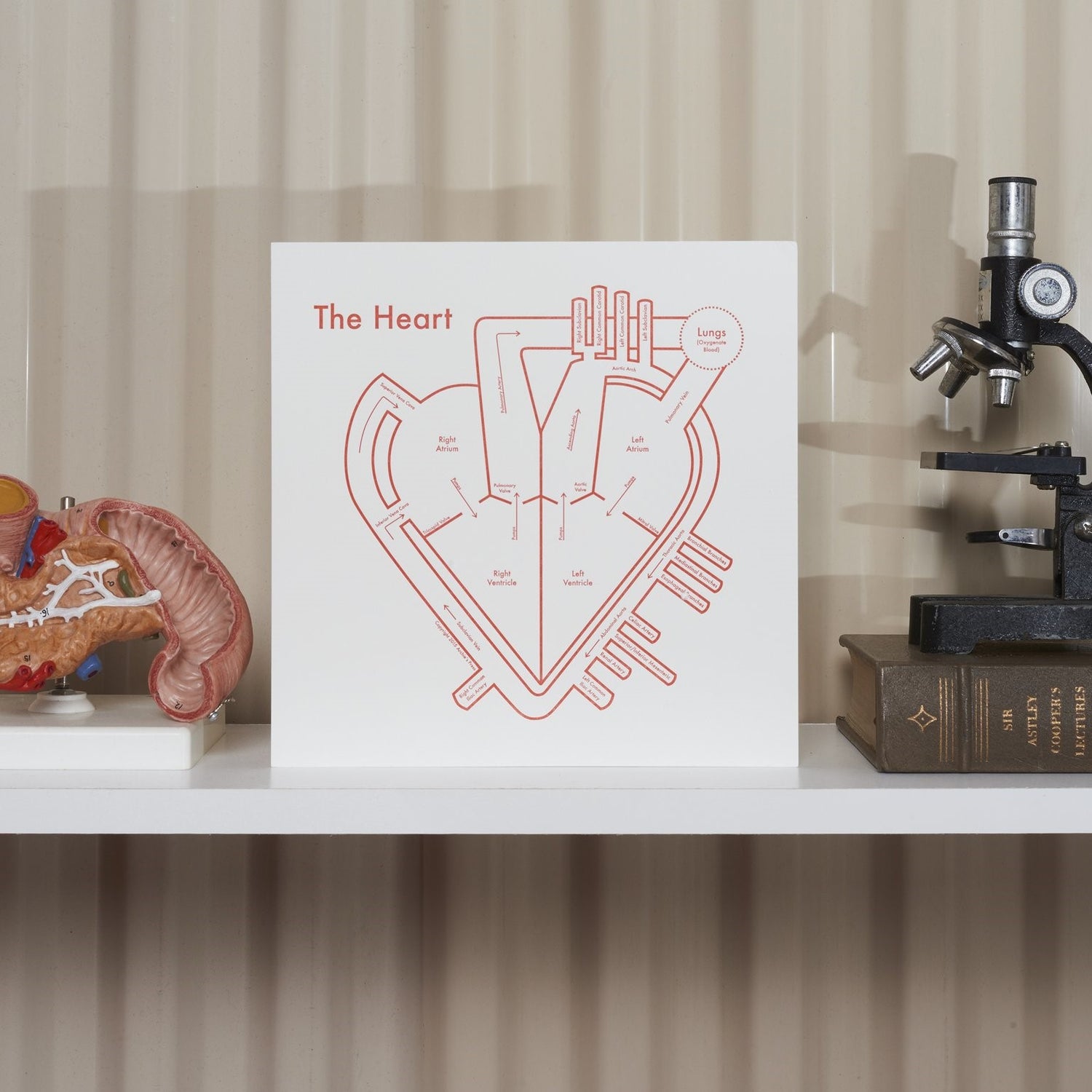 What's the correlation between the graphic heart shape and the blood-pumping organ in our chests? Actually, not much. It's been used since about the 1400s, but nobody really knows why. This print explains the most important muscle in your body with modern simplicity, using the shape we all associate with love and happiness.